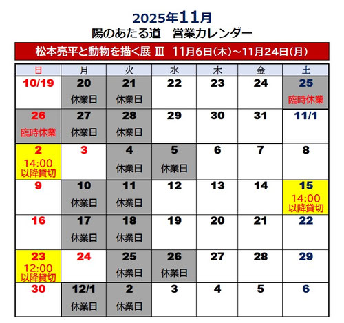 ・11月2日 (日) 14時以降貸切り・・・ライブのため